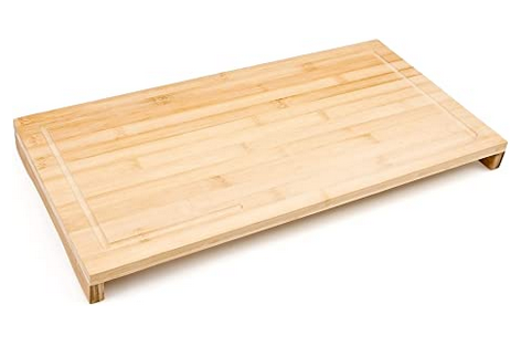 Deswegen haben wir nach einem großen erhöhten Schneidebrett gesucht und wurden mit diesem Schneidebrett aus Bambus mit Saftrille von Relaxdays super fündig.